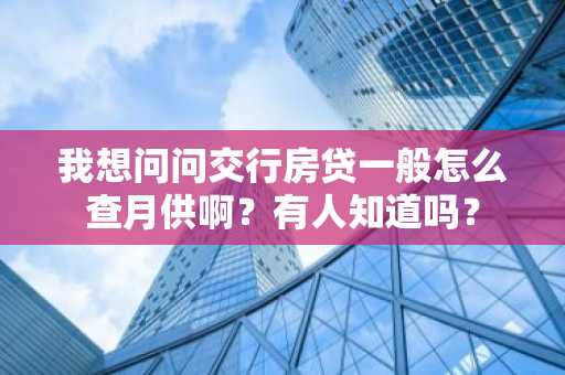 我想问问交行房贷一般怎么查月供啊?有人知道吗?