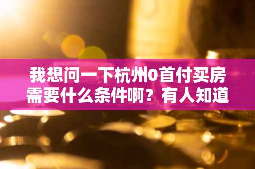我想问一下杭州0首付买房需要什么条件啊?有人知道吗?