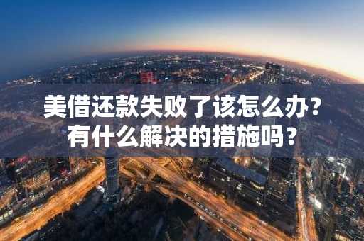 你不用太过担心,如果你在美借上还款失败了的话,建议你先弄清楚还款失败的原因。还款失败的原因有两点,一点在你自己身上,一点在美借平台自身。首先建议你看看你还款的时间,看看还款的时间是否在美借允许和提倡的时间范围之内;其次,看看你的网络你的手机,看看是不是网络不好或者是手机卡顿引起的还款失败;**,你可以查询一下你的还款账户,看看是不是账户除了问题,如果是的话,及时联系银行客服解决。如果问题不出在你身上的话,那就是平台出了问题,可能平台自身出现了一些问题,建议你及时联系客服处理,美借平台的客服应该能够帮你解决。