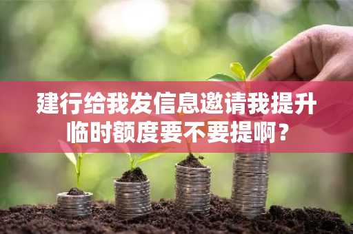 建行给我发信息邀请你提升临时额度的话,说明你目前的用卡情况还是不错的,如果你有需要的话,就选择提升临时额度。如果最近有比较大额交易需求的话,就回复短信申请,如果没有,就不要申请了,等到真正有临时额度需要的时候再申请。如果你信用卡使用情况保持良好或者个人资质有提升的时候,银行会主动给你调整**额度的。