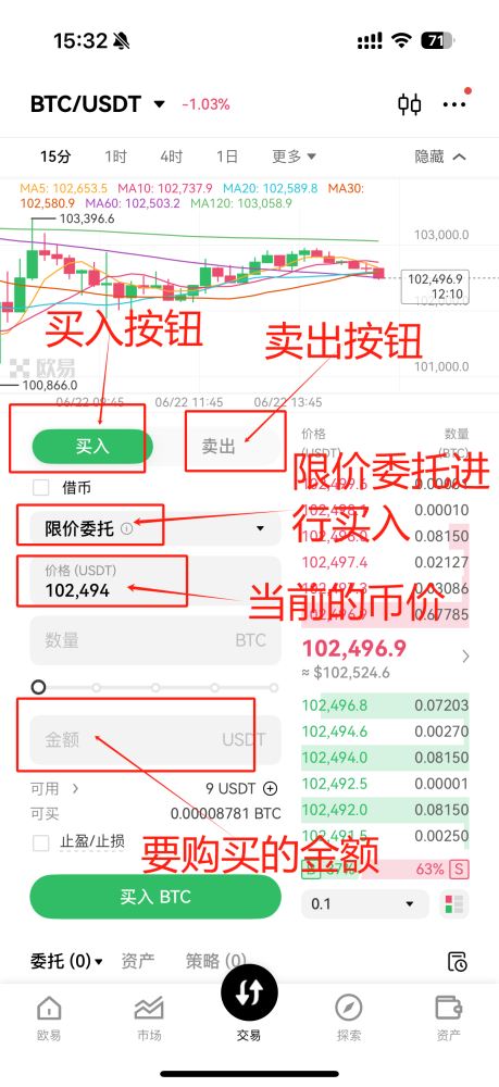 在交易页面,你可以实时查看各种数字货币的行情信息,包括价格、交易量等。选择你感兴趣的数字货币对(如BTC/USDT、ETH/USDT等),输入购买或卖出的数量,点击“下单”即可进行交易。若需撤销订单,只需在订单列表中选择相应订单并点击“撤销”按钮。