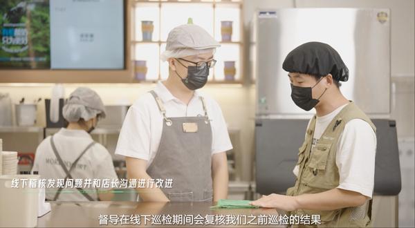 视频中,直观地展示了:门店店员与店长构成首道防线的守关人,承担着 “日管控” 职责。从资质证照公示到操作台**,从健康证核验到原料效期排查,10 个维度的日常巡检,让每个操作环节都有规可循。督导团队的 “周排查” 则形成第二重保障,每周定期到店,对卫生整洁度、设备运行状态、员工操作技能、产品配方执行等进行全方位巡查,将潜在风险及时**。公司高层则针对食安**问题,进行整体资源的“月调度”排查和整改。