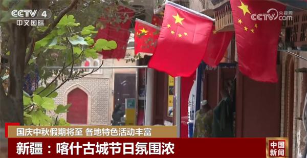 在新疆喀什,国庆节来临前,古城的街道上都挂满了鲜艳的五星红旗,让来自**各地的游客们都感受到节日的喜庆氛围。