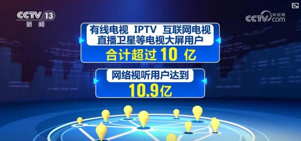 “十四五”时期,我国广播电视和网络视听两大业务深度融合、协同发展,我国在用户、内容、产业等规模上已经成为广播电视和网络视听大国。目前,有线电视、IPTV、互联网电视、卫星等电视大屏用户合计超过10亿,网络视听用户达到10.9亿。