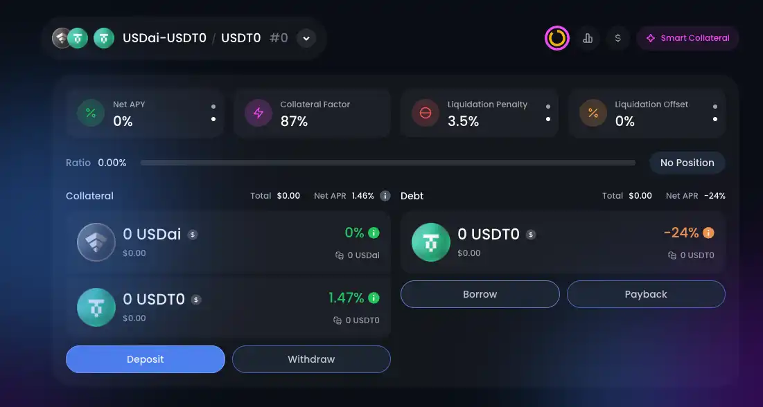 相比于 Pla**a,其优势就是可以随时提取,但需要在不持有** USDT0 或 USDe 债务的情况下提供 USDT0,意味着无法进行循环贷提升使用率。