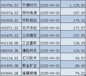 北向资金三季度持仓曝光:宁德市值第一,京东方A获增持股数最多