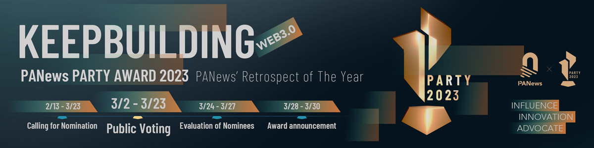 PARTY AWARD 2023 年度评选开启投票!经数据初选、公开征集及社区推荐,本届评选已收集了超过190条报名信息,有深耕行业巨头,也有惊艳登场的新星。给无视牛熊“Keep Building”的真Builder 投上宝贵的一票!