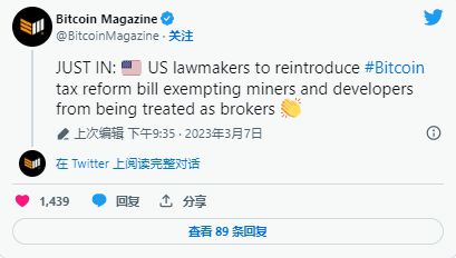 有传言称美国国会的立法者可能会重新引入一项修正案,该修正案将使比特币矿工和开发商免于被税务机关视为经纪人,这可能会提供急需的看涨基本面消息来源。