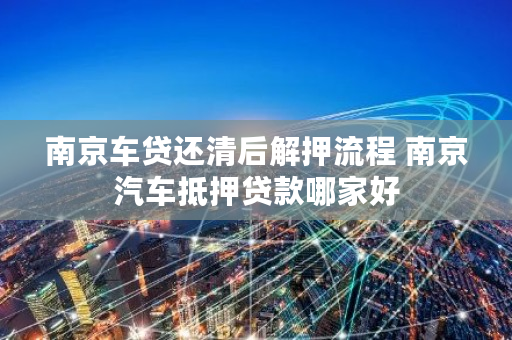 南京车贷还清后解押流程 南京汽车抵押贷款哪家好