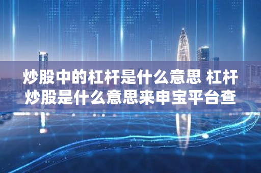 炒股中的杠杆是什么意思 杠杆炒股是什么意思来申宝平台查f