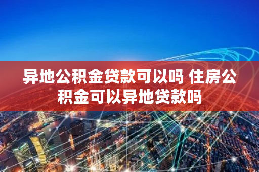 异地公积金贷款可以吗 住房公积金可以异地贷款吗