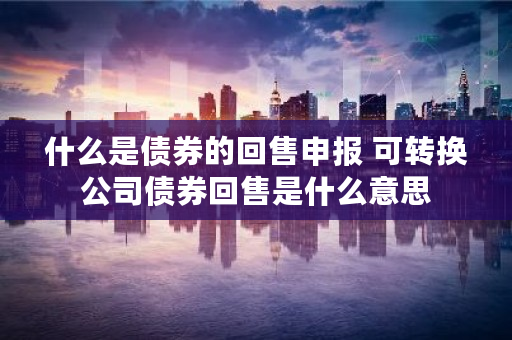 什么是债券的回售申报 可转换公司债券回售是什么意思