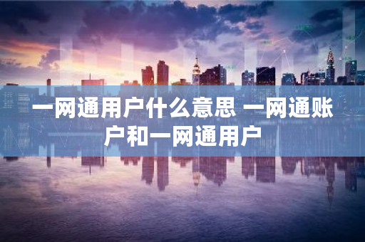 一网通用户什么意思 一网通账户和一网通用户