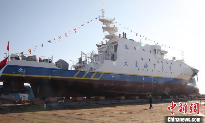 中新网大连12月25日电 (记者 杨毅)大连海事大学智能研究与实训两用船25日在辽宁大连中远海运重工有限公司工业园下水。该船是全球首艘具有自主航行、远程控制和自主操作功能的科研及实训船。
