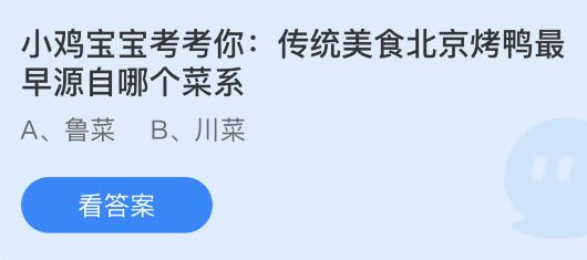 2、小鸡宝宝考考你:传统美食北京烤鸭最早源自哪个菜系