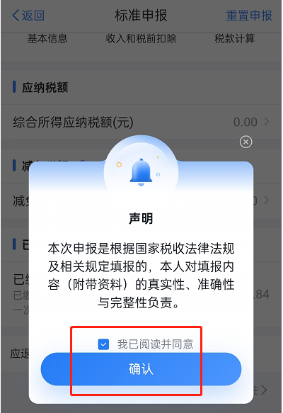 7、阅读声明,勾选同意,点击【确认】;