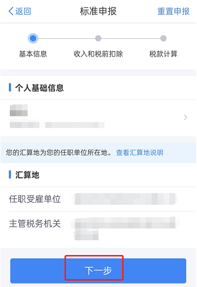 3、确认基本信息、受雇单位,点击【下一步】;