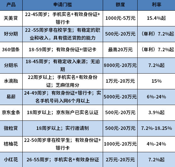 申请门槛:18-45周岁;有稳定收入来源;无逾期等。