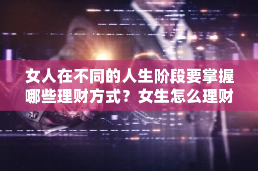 女人在每个阶段,要掌握不同的理财方式,只有更好的掌握了理财,才会让自己的人生更加精彩。