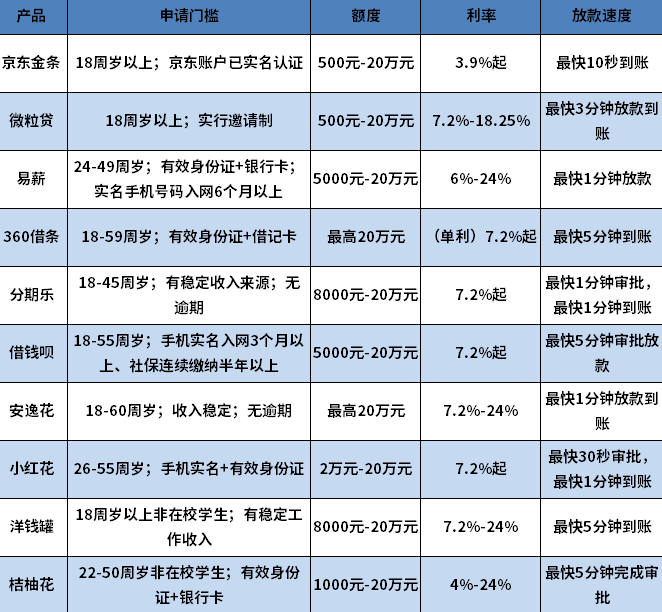 申请门槛:18-45周岁;有稳定收入来源;无逾期等。
