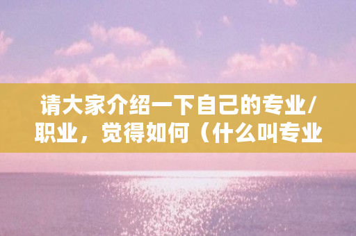 请大家介绍一下自己的专业/职业,觉得如何(什么叫专业 这就叫专业)