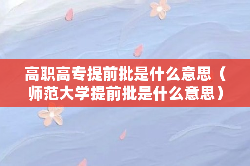 高职高专提前批是什么意思(师范大学提前批是什么意思)