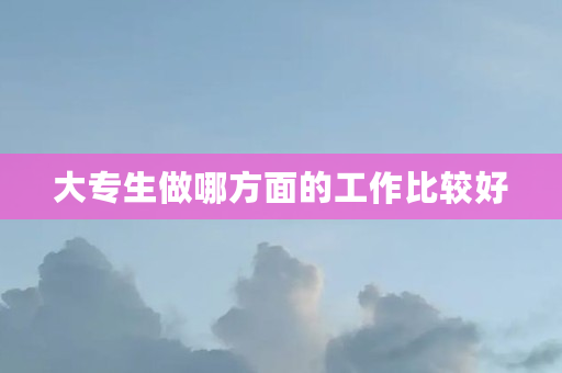 并不是说大专生适合做什么工作?而是你喜欢做什么工作?适合做什么工作,你要给自己一个定位,根据你自身的情况,请高人指点,几年之后,你就会取得**的成绩。