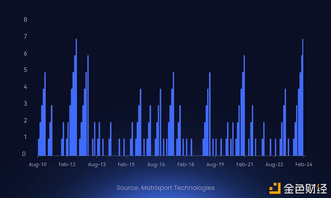 Matrixport:比特币第二次实现连续七个月的正收益 作者:LR •更新时间:2024-03-27 13:11:47•阅读 0本站报道,Matrixport在社交平台上表示,比特币第二次实现连续七个月的正收益。此前在2012年,比特币在接下来的一个月中下跌了10%,之后又连续6个月实现正收益。