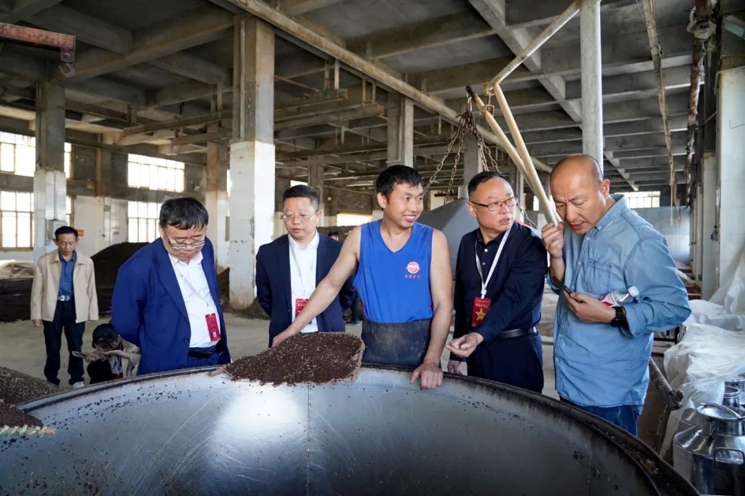 在贵州五星酒业集团创始人焦永权总裁及副总裁张鹏的陪同下,专家组领导一行人深入参观了五星酒业旗下的茅台镇椿树基酒厂和岩滩基酒厂。他们逐一探访了制曲车间、下沙车间、万吨酒库、包装车间以及充满历史与文化韵味的五星文化馆。每到一处,专家们都细致询问、严谨记录,对五星酒业坚守的传统工艺、技术创新和质量控制给予了高度评价。