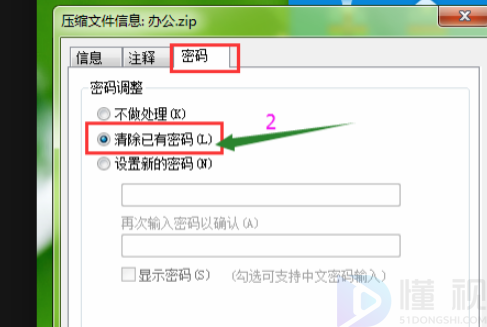1、双**开压缩包,进入到解压操作界面中,点**开“密码”。