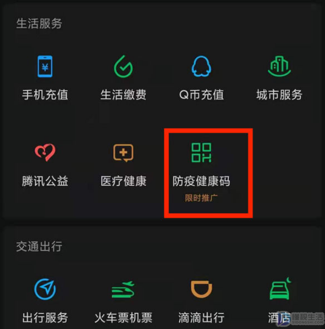 2、找到生活服务,点击“防疫健康码”,选择查看防疫健康码;