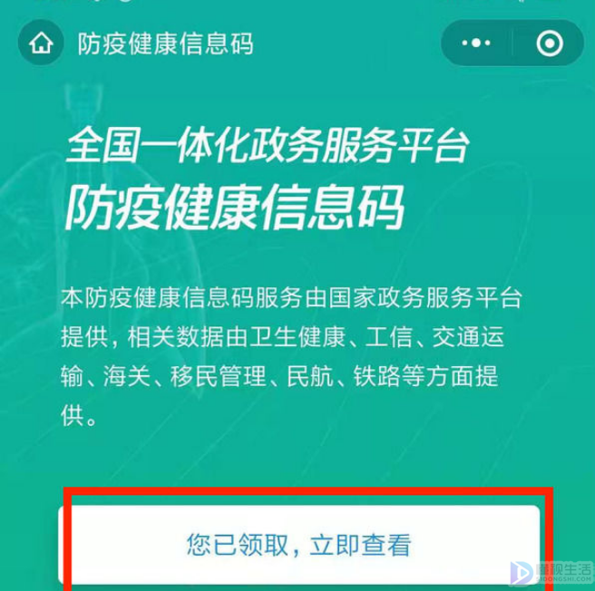 3、进入防疫健康信息码平台点击立即查看,即可查询到自己的防疫健康信息码是否异常。