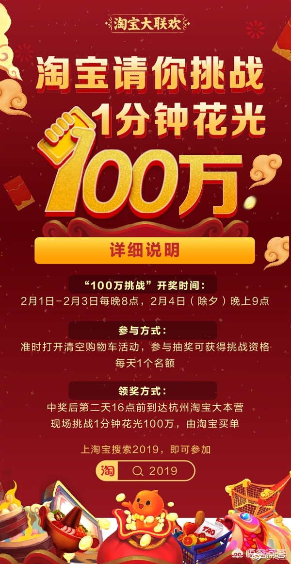 这个活动的规则是:1分钟,随便买,花100万,杭州淘宝室现场用自己的手机下单,并且要求每单不超过10万元。