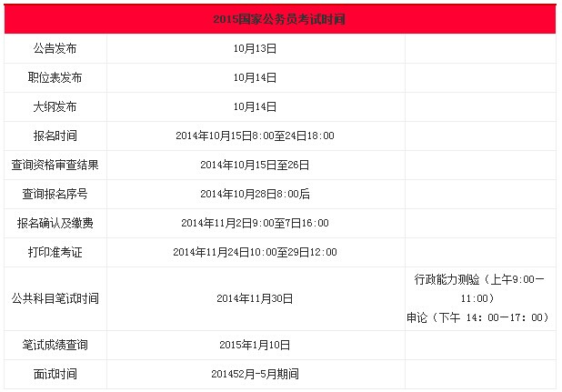 2016年**公务员考试公告预计在10月份发布,目前羡型暂不确橡兆定考试时间,可参考15年考试时间安排梁派租如下: