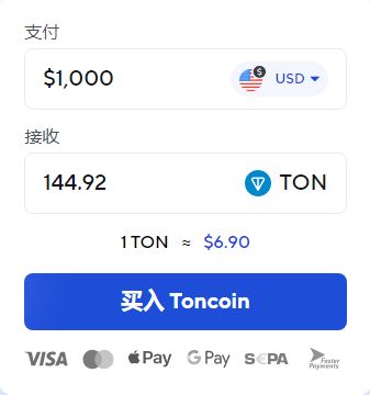 在数秒内买入Toncoin通过卡或即时银行转账安全买入TON。1美元起买。