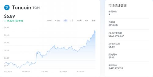 Toncoin 的当前价格为 $6.89,因为过去 24 小时其价值已上涨 13.62%。 Toncoin 相比其 $7.63 的历史高点下跌 10.43%。 Toncoin 市值排名第 9,相当于整个加密货币市场的 0.95%。 Toncoin 是一种去**化货币,这意味着您无需依赖传统的货币系统,即可购买、出售和交易这种货币。