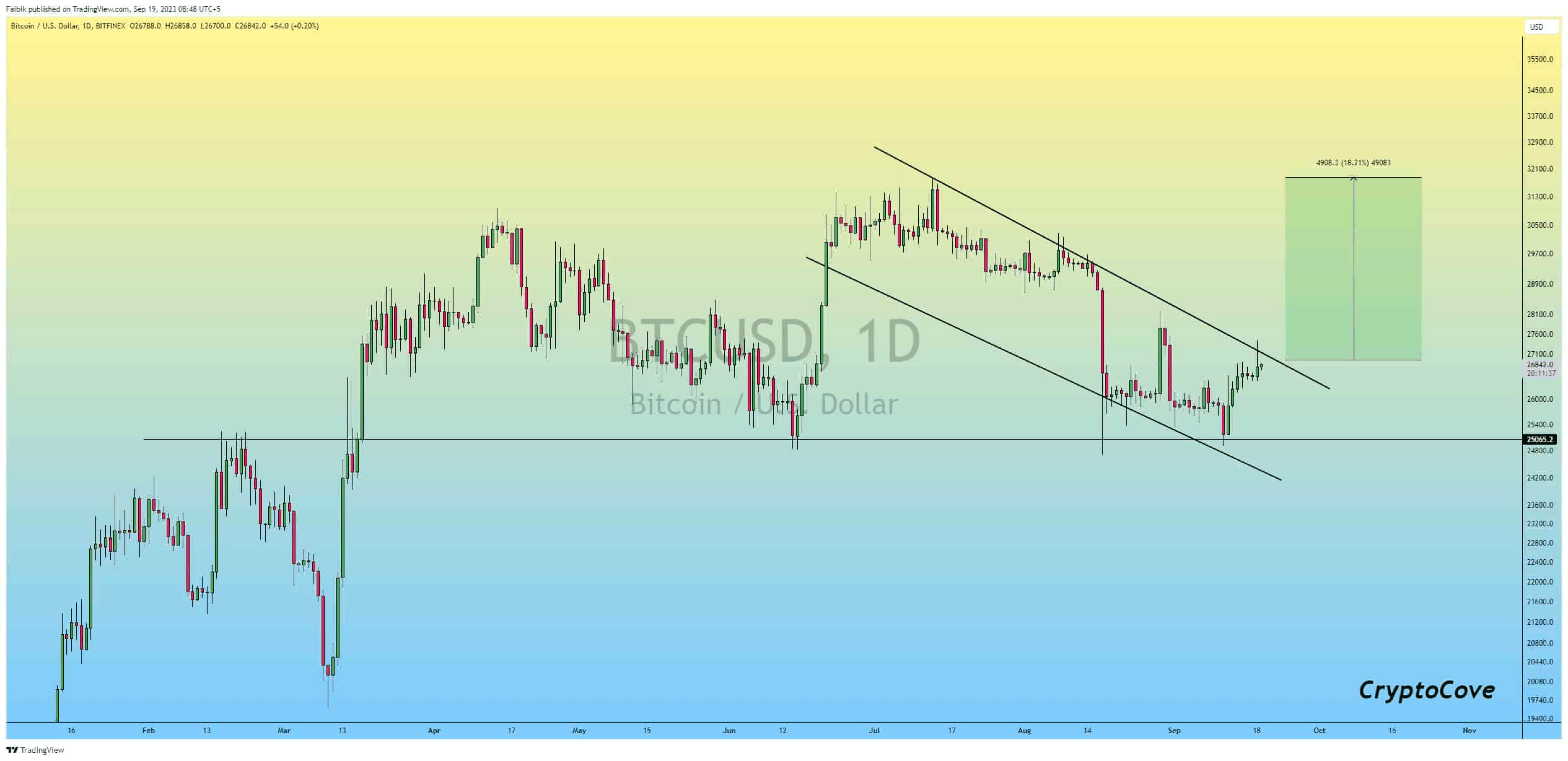 @CryptoFaibik等分析师和交易员 认为,现在是多头**掌控局面并“征服 2.7 万美元阻力位”的时候了。他补充说,“如果多头成功”,投资者应该预计反弹目标是 31.800 美元阻力位。