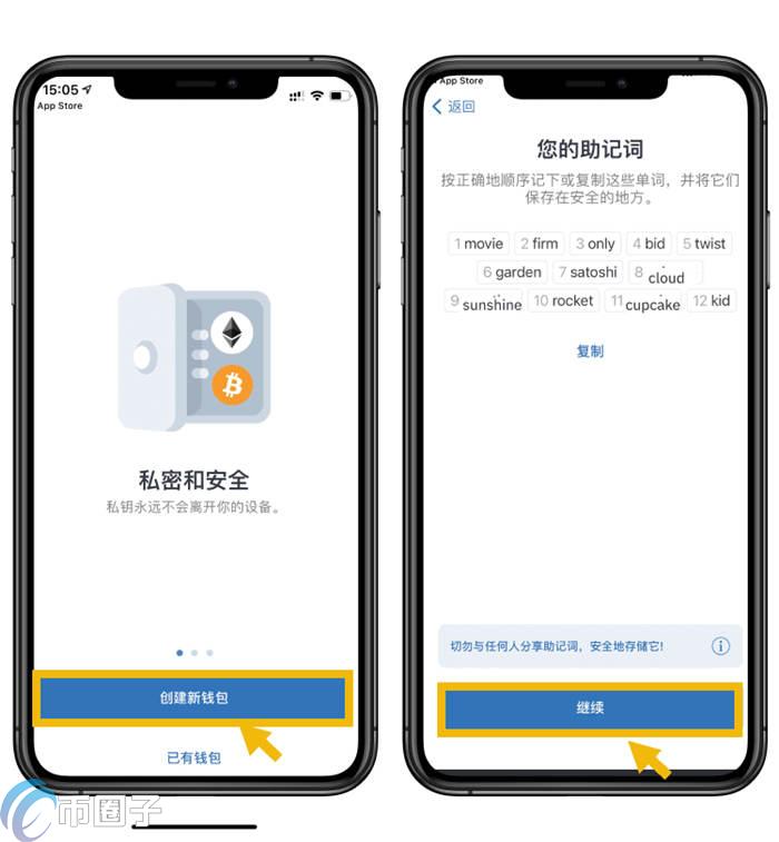 如果您没有钱包,单击“创建新钱包”并备份12个助记词。请注意保管您的私钥、助记词,不要在**情况与他人分享这些。