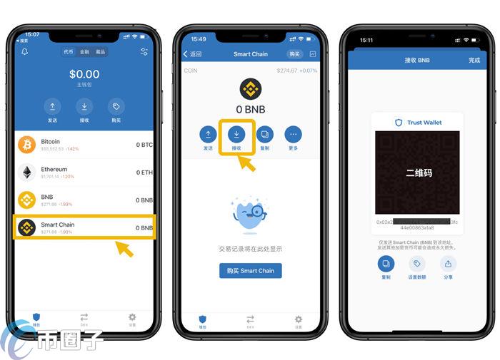 以Trust Wallet为例,您可以按照以下步骤找到您的BNBChain持币地址。