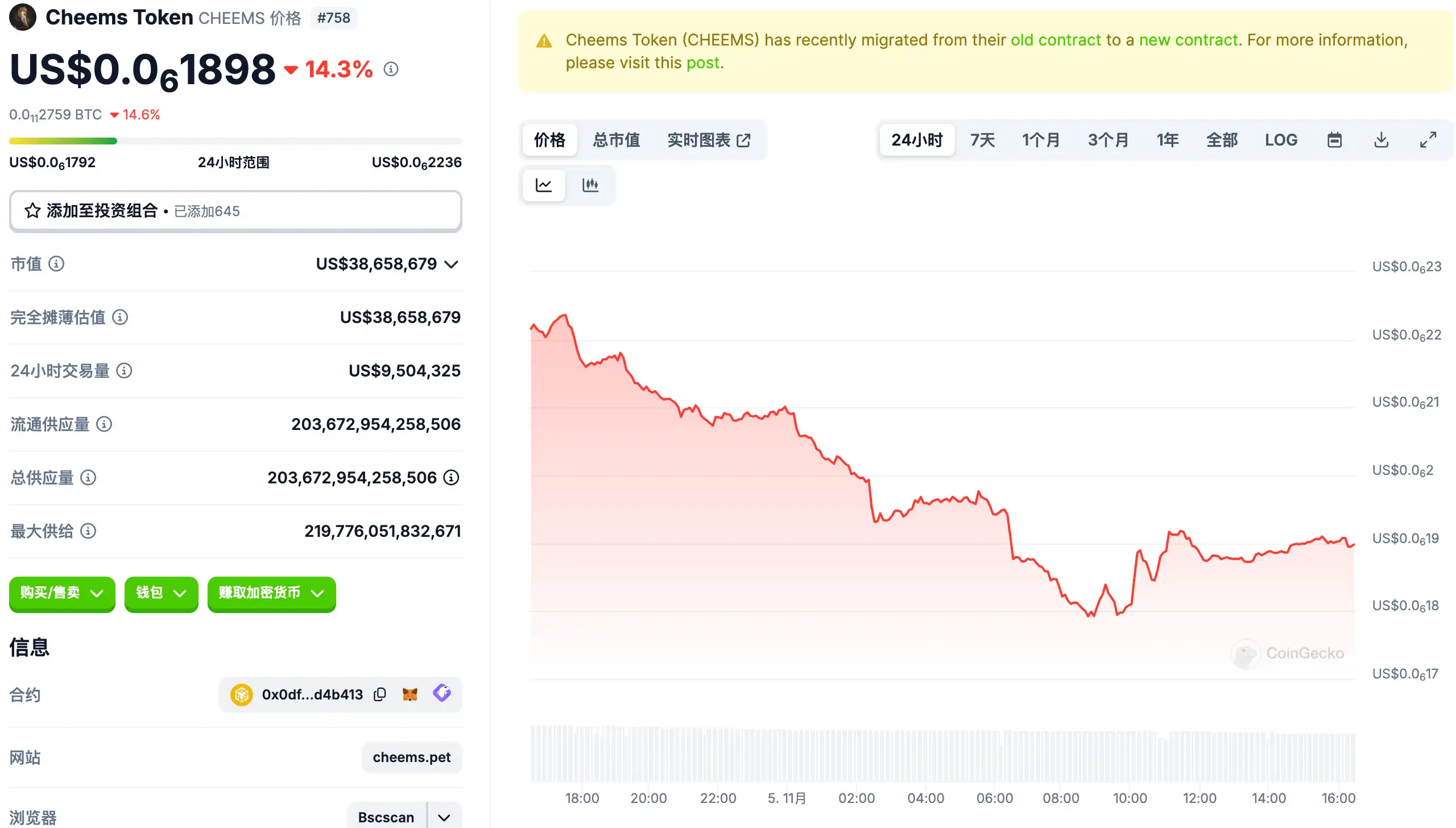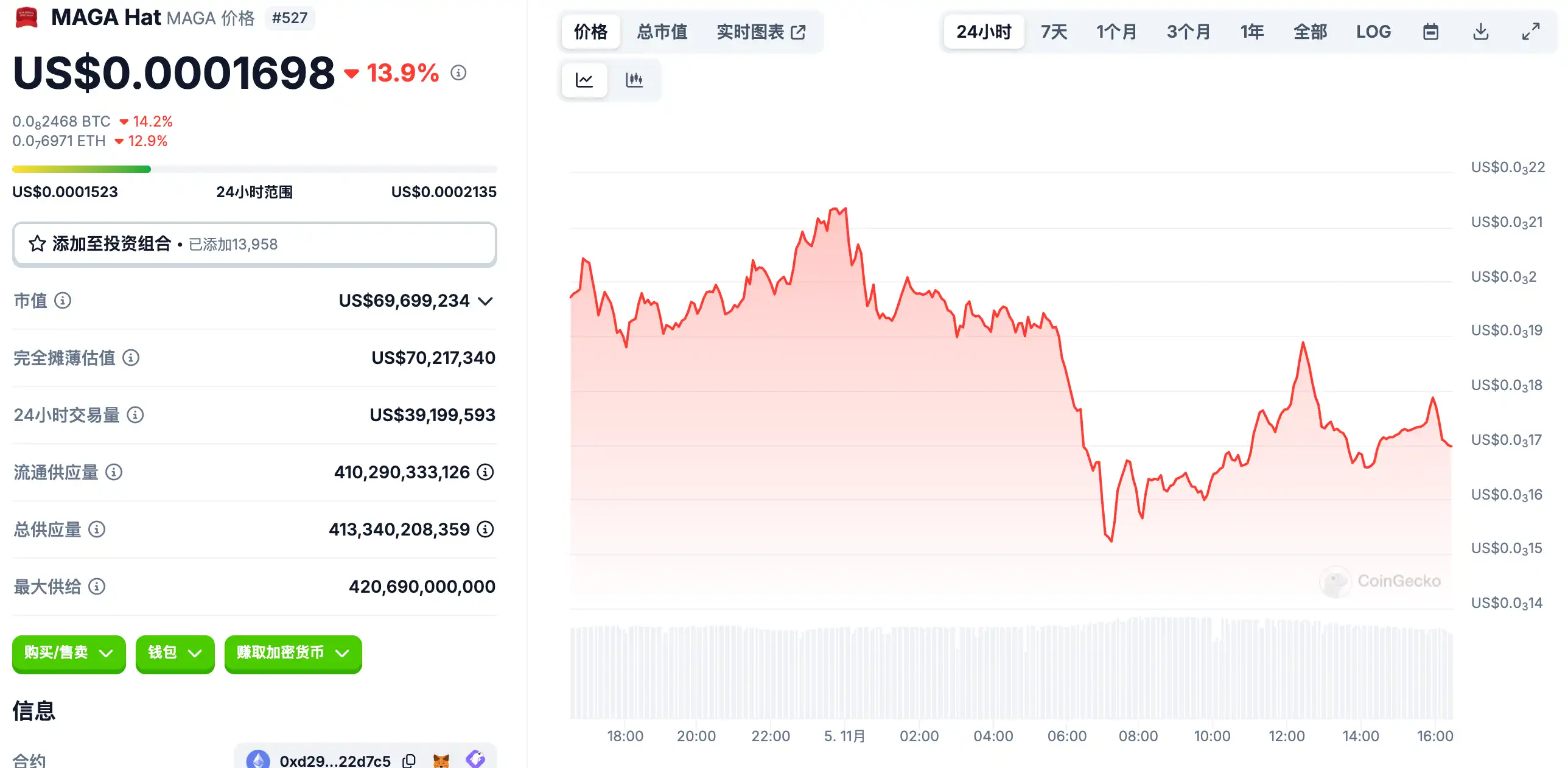 3.ZachXBT 部署的 ERC-20z **市值突破 1400 万美元后回落,24 小时交易量达 108 万美元