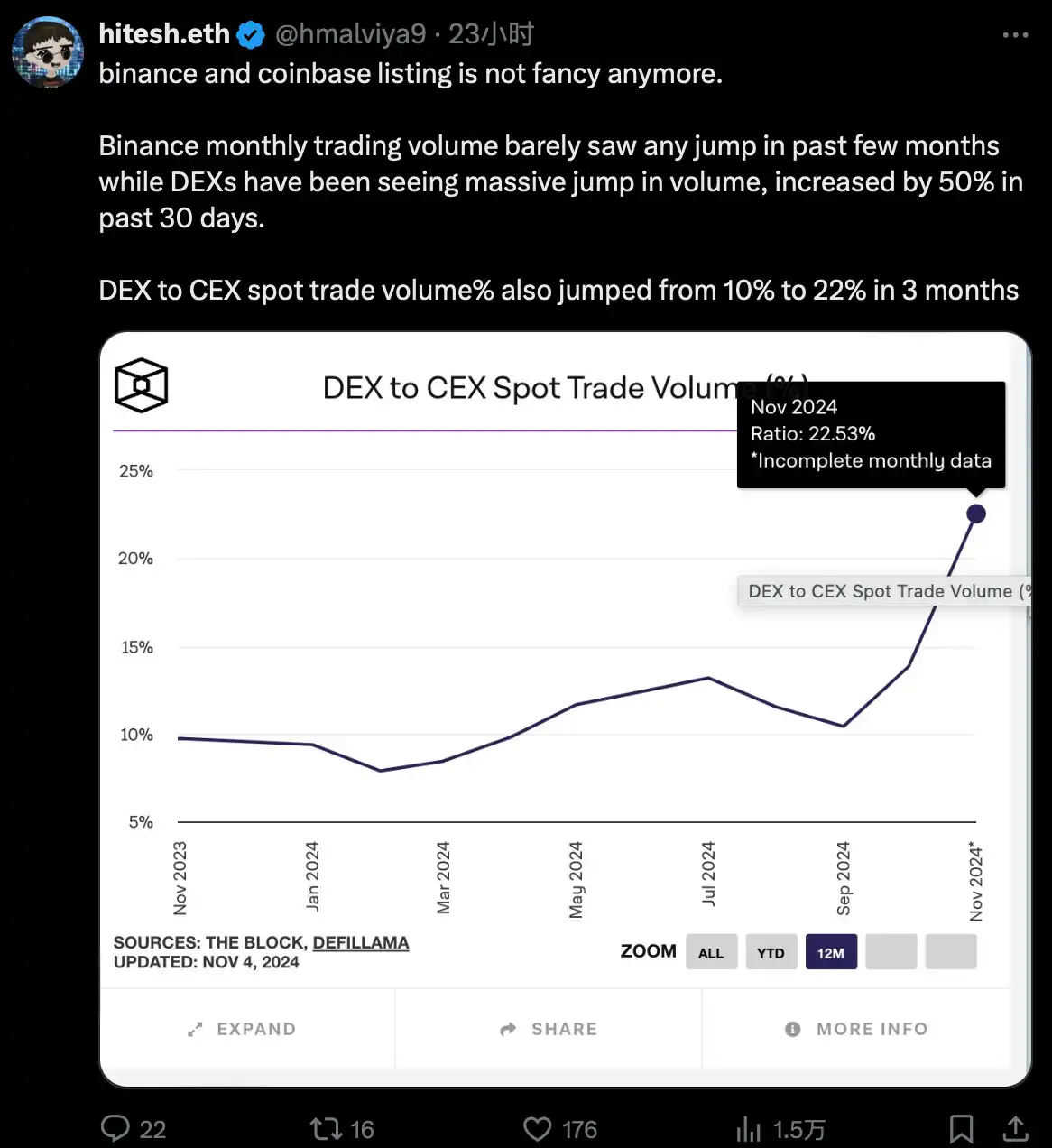 1. 关于 Binance 上线 PONKE 与 DEX 对比 CEX 交易量的思考,@hmalviya9