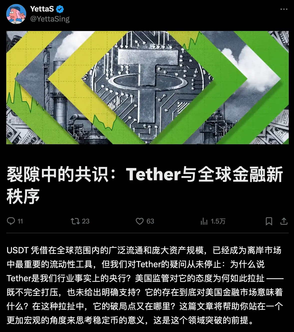 2. 关于 USDT 和 Tether 在离岸金融世界的角色,@YettaSing
