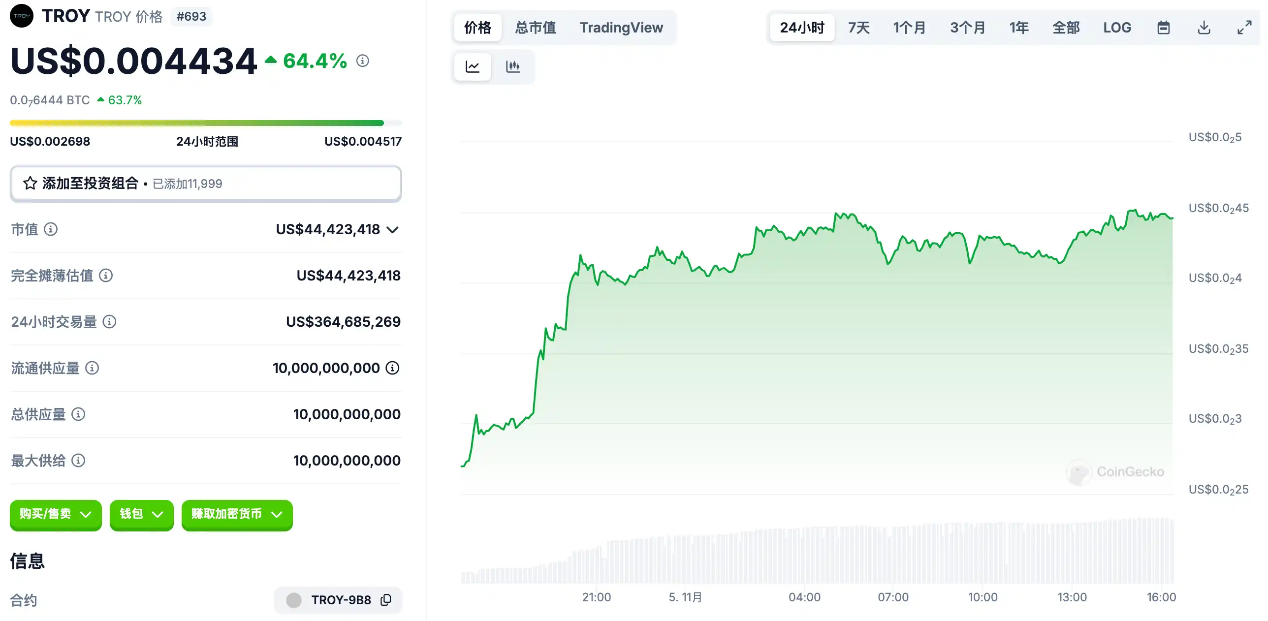 11 月 5 日**波动情况,按 24 小时交易量筛选并排列