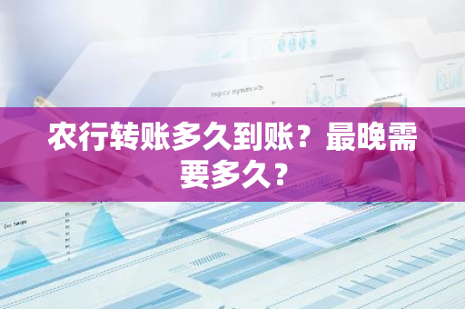 农业银行转账服务一直以来备受用户信赖,其转账服务不仅方便快捷,而且安全可靠。对于许多用户来说,转账的最晚到账时间是一个重要的考虑因素。通常情况下,农业银行转账的最晚到账时间为24小时。这意味着用户在进行转账后,资金将在最长不超过一天的时间内到达对方账户。这对于急需转账的用户来说是一个很好的选择。