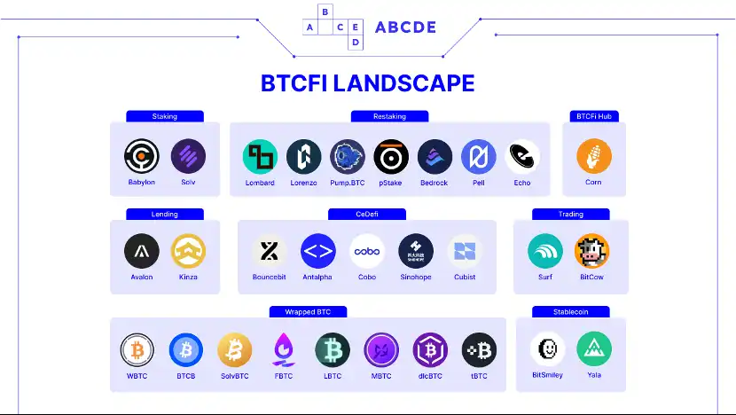 5、BTCFi 围绕比特币的两大方向展开,一、提升比特币的生息属性,代表项目有 Babylon、Solv、Echo、Lombard、Lorenzo、Corn 等;二、提升比特币的流动性,代表项目有 Wrapped BTC、Yala、Avalon 等;