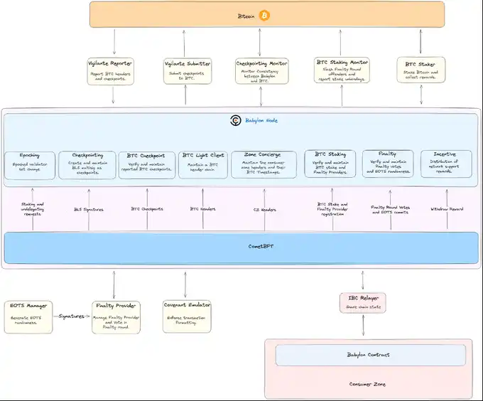 通过「Restaking」技术,Babylon 主要用于提升 POS 链的安全性。然而,如果想实现完整的 Eigenlayer 技术栈(比如类似 EigenDA 这样的功能),或者更加复杂的罚没(Slashing)机制,这还需要 Babylon 生态内的其他项目协同完成。