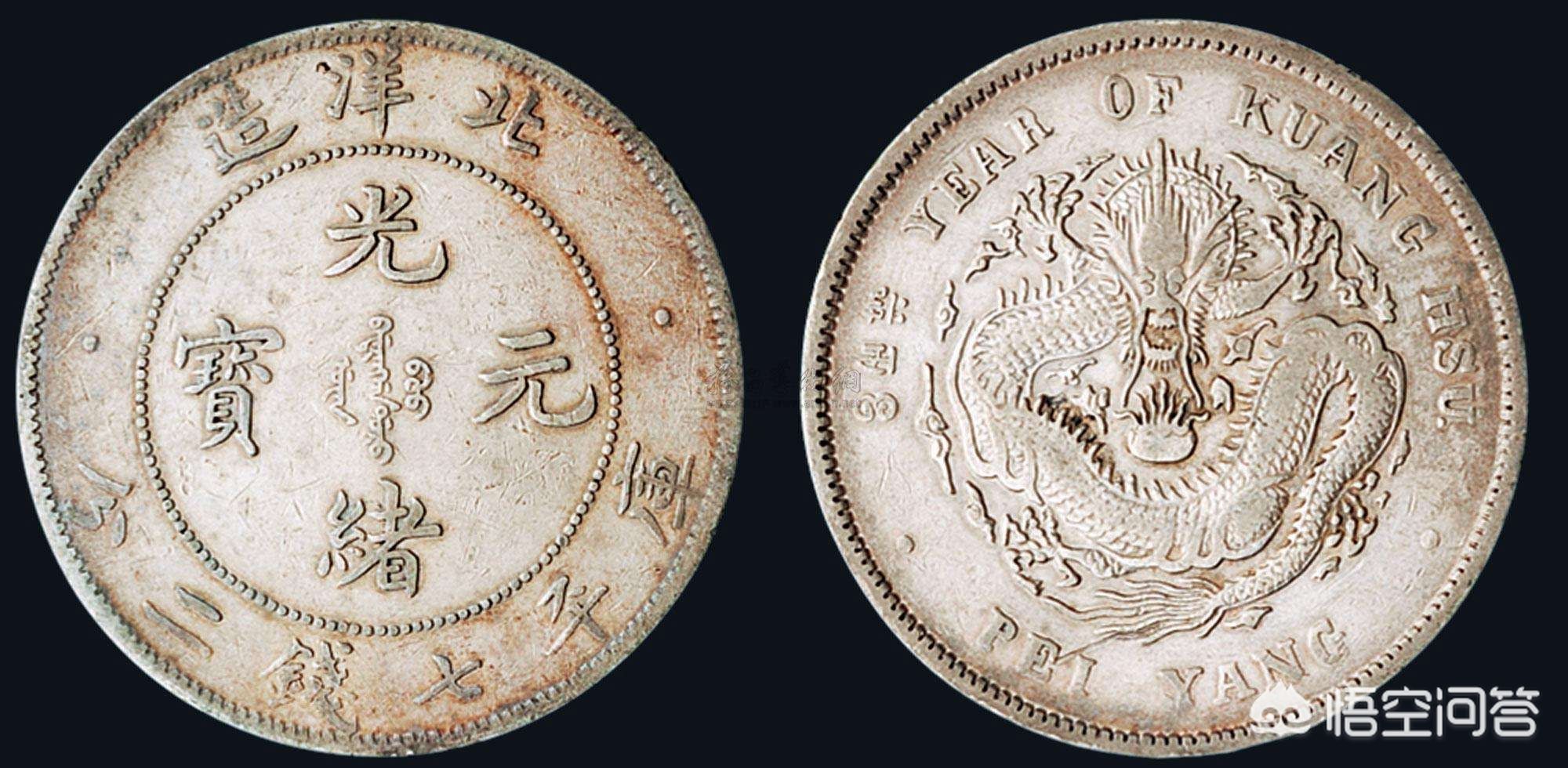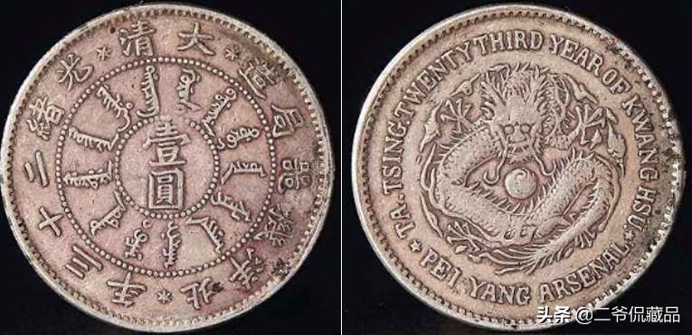 北洋造光绪元宝是我国早期的机制币铸造部门,银元外表具有别具特色的图案