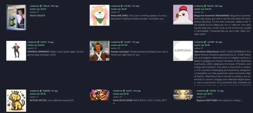 pump.fun 上不断刷新出现的新 Meme **,来源:pump.fun
