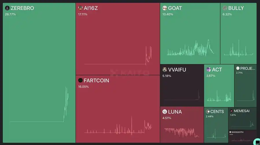 0xzerebro 在关注度上**,但其市值仅为 GOAT 的一半,尽管其关注度高出 2.8 倍。