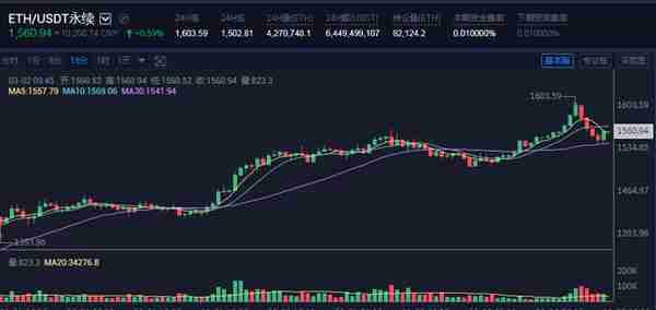 1、ETH价格触及1580-1590一线做空,止损1620,目标看1520-1500一线;